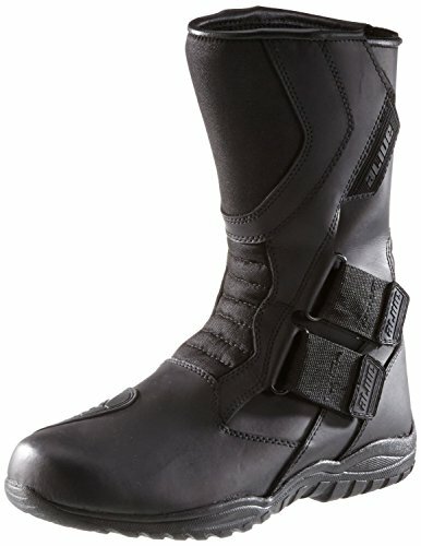 Motorradstiefel Tourenstiefel schwarz, Wasserabweisend, Außenmaterial: Leder mit PU-Beschichtung, schnelles bequemes an und ausziehen durch Klettverschlüsse, Schaltverstärkung am Schuh, Angeschraubte Schleifkanten, Knöchelverstärkung